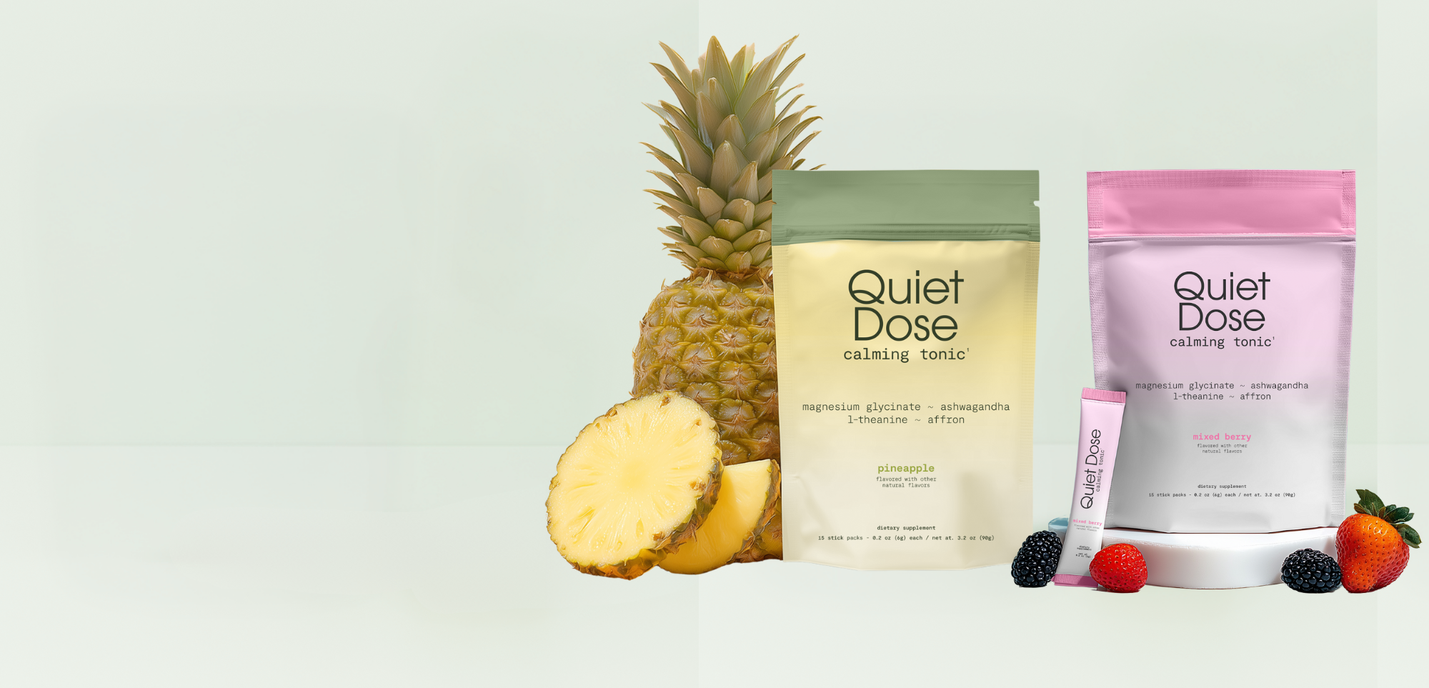 Quiet Dose tastes like a premium craft mocktail - clean, smooth, and refreshing with subtle berry notes. No medicinal or artificial taste like most wellness drinks. You can drink it straight, over ice, or mix with sparkling water. It's designed to be genuinely enjoyable, not just functional.